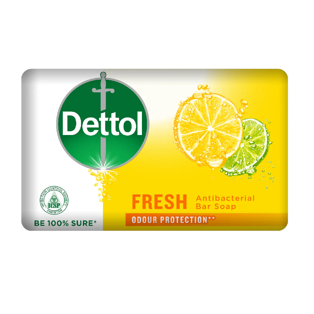 Dettol Fresh Soap Protection Antibacterial Soap destroys 99.9% of germs for a deep cleanse. Its unique formula is enriched with moisturizing properties, giving you long-lasting freshness and protection.