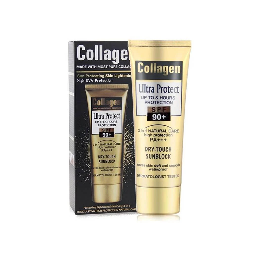 Lady Model Collagen Ultra Protect Dry Touch SPF 90+. This multifunctional sunscreen offers complete protection with collagen for healthy, radiant skin.